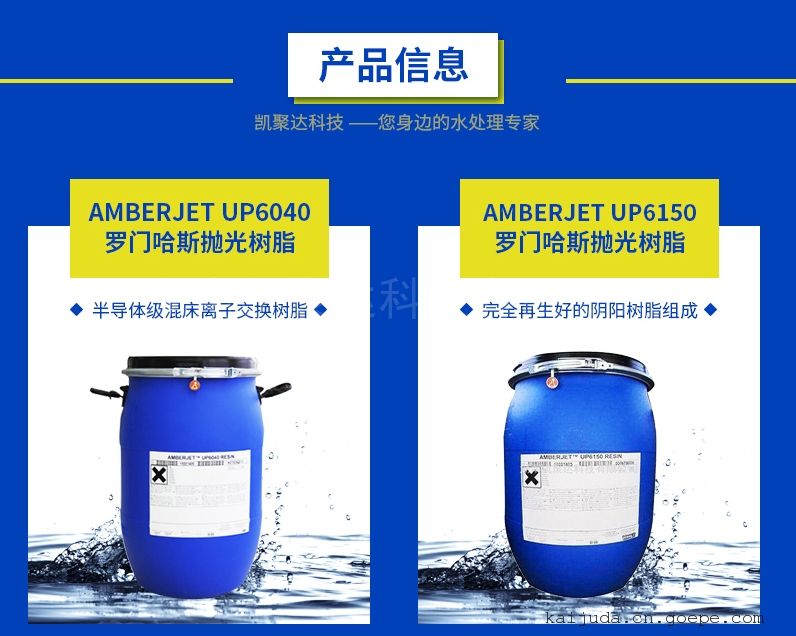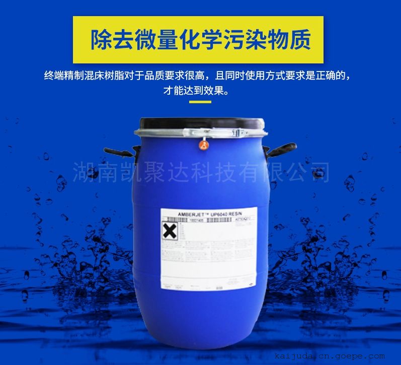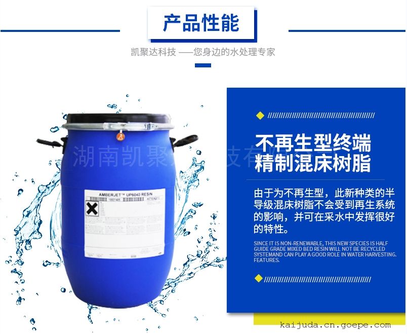 UP6150是由完全再生好的陰陽樹脂組成,應用于超純水系統中反滲透裝置后的混床中。這種混床樹脂產品一般應用于特殊電子行業的超純水精制中。